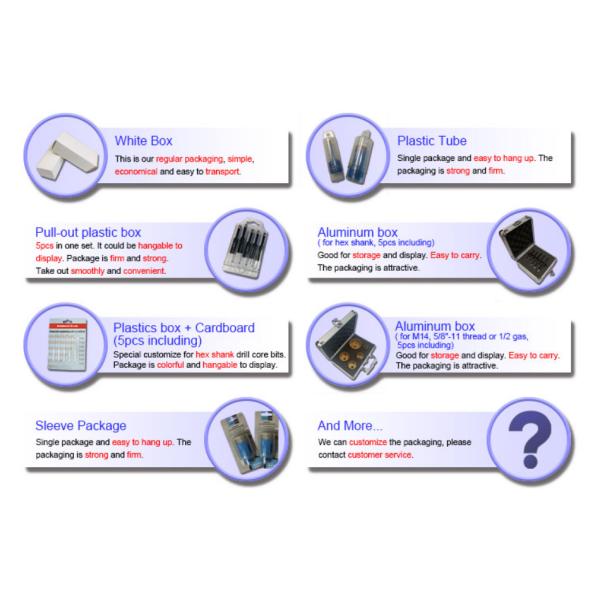 | Features | 1. Vacuum Brazed Diamond Core Bits are very aggressive ideal for drilling ceramic and porcelain tiles with super high precision while leaving smooth edges with minimal chipping. 2. Vacuum brazed technology is superior to electroplating in that the bits last much longer than electro-plated diamond bits. 3. They can typically drill more than 30 holes although life is dependent on type of material. |